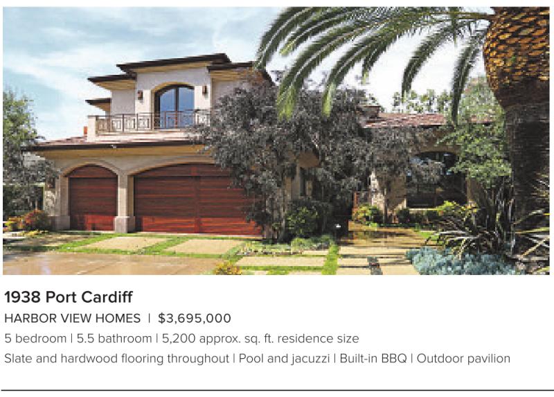 HARBOR VIEW HOMES | $3,695,000 5 bedroom | 5.5 bathroom | 5,200 approx. sq. ft. residence size Slate and hardwood flooring throughout | Pool and jacuzzi | Built-in BBQ | Outdoor pavilion