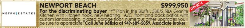 be sure to appreciate! Call June Batista at 949-689-5059, Associate Broker