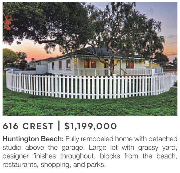 Huntington Beach: Fully remodeled home with detached studio above the garage. Large lot with grassy yard, designer finishes throughout, blocks from the beach, restaurants, shopping, and parks.