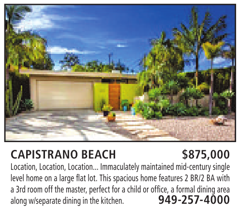 CAPISTRANO BEACH $875,000 Location, Location, Location... Immaculatelymaintained mid-centurysingle