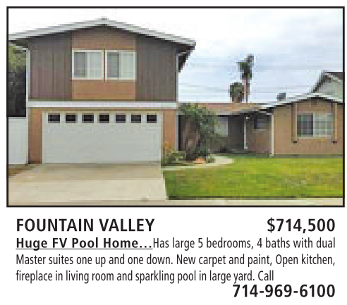 FOUNTAIN VALLEY $714,500 Huge FV Pool Home…Has large 5bedrooms, 4baths with dual