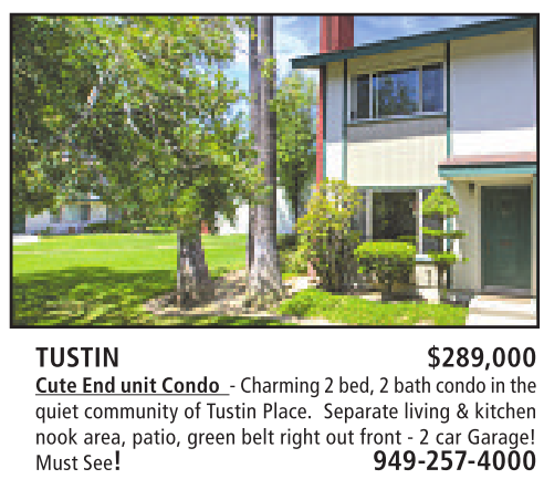quiet community of Tustin Place. Separate living &kitchen nook area, patio, green belt right out front -2car Garage! Must See! 949-257-4000
