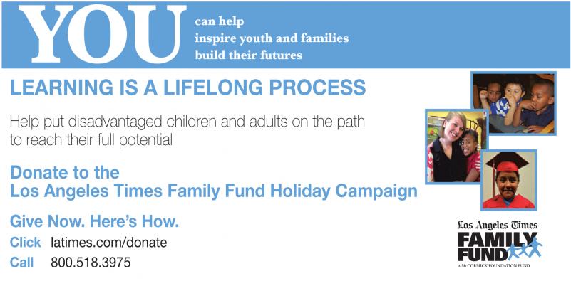 LEARNING IS A LIFELONG PROCESS Help put disadvantaged children and adults on the path to reach their full potential Donate to the Los Angeles Times Family Fund Holiday Campaign Give Now. Here’s How. Click latimes.com/donate Call 800.518.3975 can help inspire youth and families build their futures
