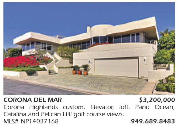 CORONA DEL MAR $3,200,000 Corona Highlands custom. Elevator, loft. Pano Ocean, Catalina and Pelican Hill golf course views. MLS# NP14037168 949.689.8483