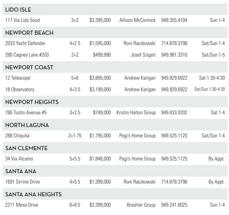 2211 Mesa Drive 6+8.5 $3,399,000 Brashier Group 949.241.6025 Sun 1-4