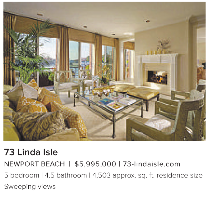 NEWPORT BEACH | $5,995,000 | 73-lindaisle.com 5 bedroom | 4.5 bathroom | 4,503 approx. sq. ft. residence size Sweeping views