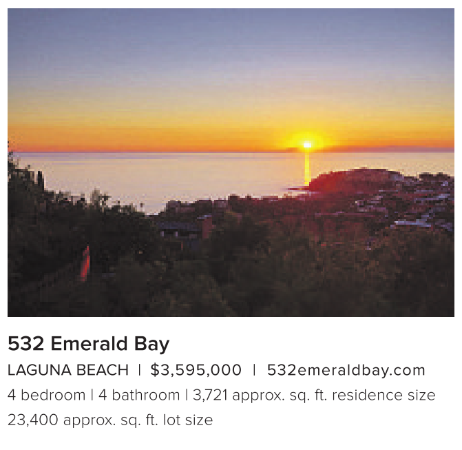 LAGUNA BEACH | $3,595,000 | 532emeraldbay.com 4 bedroom | 4 bathroom | 3,721 approx. sq. ft. residence size 23,400 approx. sq. ft. lot size