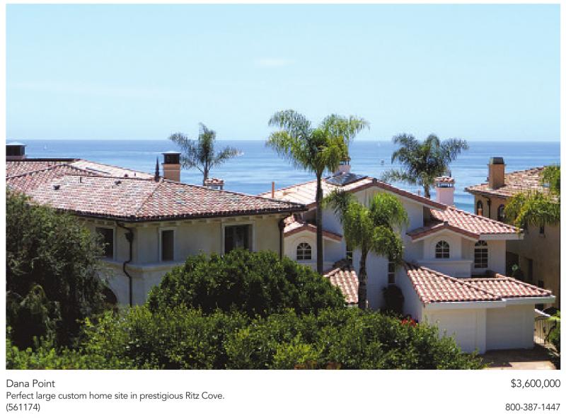 Dana Point $3,600,000 Perfect large custom home site in prestigious Ritz Cove. (561174) 800-387-1447