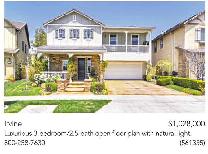Irvine $1,028,000 Luxurious 3-bedroom/2.5-bath open floor plan with natural light. 800-258-7630 (561335)