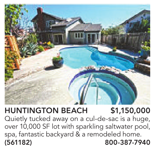 HUNTINGTON BEACH $1,150,000 Quietly tucked away on a cul-de-sac is a huge, over 10,000 SF lot with sparkling saltwater pool, spa, fantasticbackyard&aremodeledhome. (561182) 800-387-7940