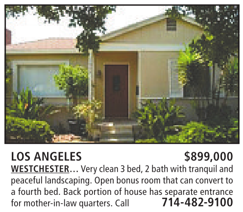 peaceful landscaping.Openbonus room that canconvert to afourth bed. Back portion ofhouse has separate entrance formother-in-law quarters.Call 714-482-9100