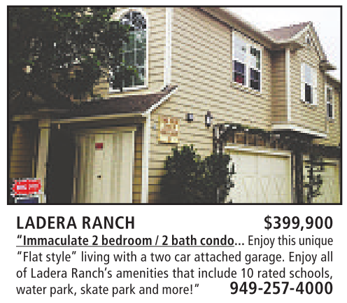 “Flat style” living with atwo car attached garage. Enjoy all of Ladera Ranch’s amenities that include 10 rated schools, waterpark, skate park andmore!” 949-257-4000