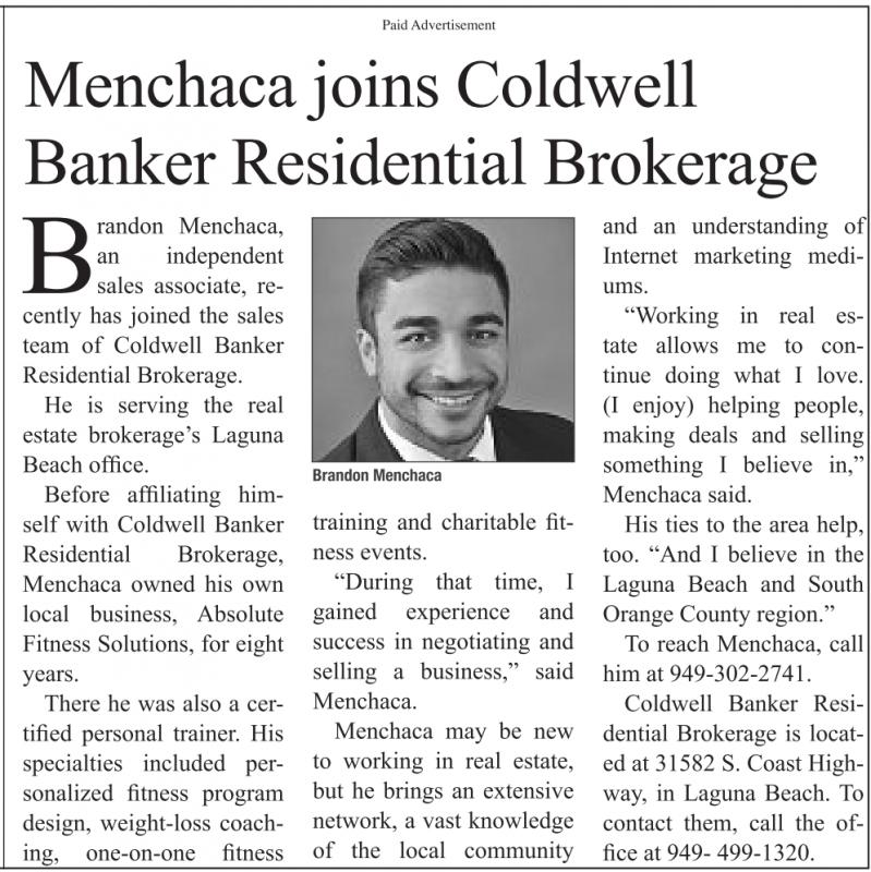 He is serving the real estate brokerage’s Laguna Beach office.