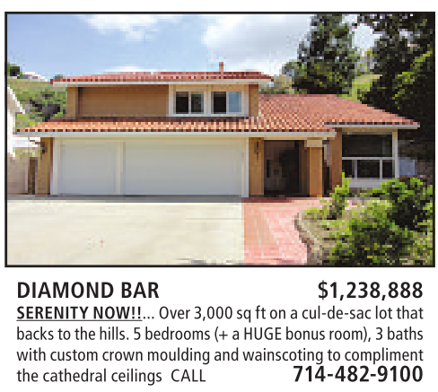 backstothe hills. 5bedrooms(+aHUGE bonusroom),3baths with customcrown moulding andwainscotingtocompliment thecathedral ceilings CALL 714-482-9100