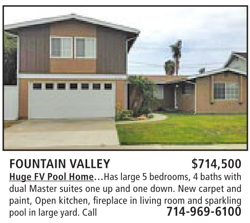 FOUNTAIN VALLEY $714,500 Huge FV Pool Home…Haslarge 5bedrooms, 4baths with
