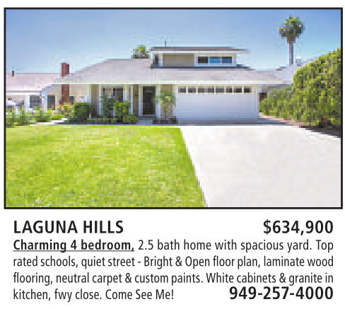 LAGUNA HILLS $634,900 Charming 4bedroom, 2.5 bath home with spacious yard. Top