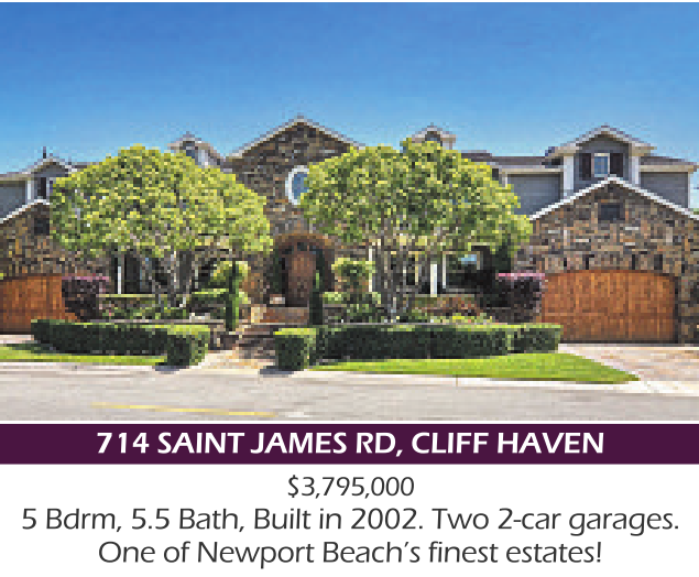 714 SAINT JAMES RD, CLIFF HAVEN $3,795,000 5 Bdrm, 5.5 Bath, Built in 2002. Two 2-car garages.