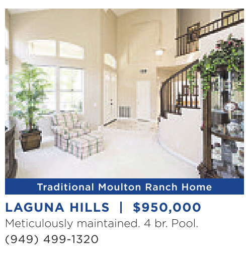 Traditional Moulton Ranch Home LAGUNA HILLS | $950,000 Meticulously maintained. 4 br. Pool. (949) 499-1320