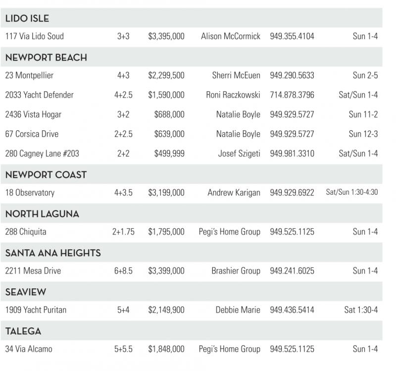 2211 Mesa Drive 6+8.5 $3,399,000 Brashier Group 949.241.6025 Sun 1-4