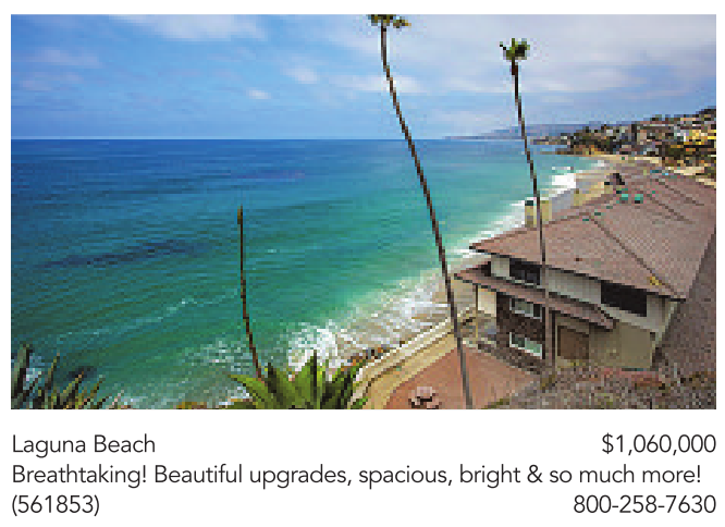 Laguna Beach $1,060,000 Breathtaking! Beautiful upgrades, spacious, bright &somuch more! (561853) 800-258-7630