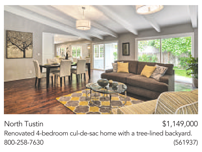 North Tustin $1,149,000 Renovated 4-bedroom cul-de-sac home with atree-lined backyard. 800-258-7630 (561937)