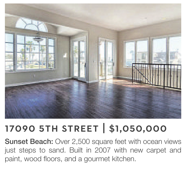 Sunset Beach: Over 2,500 square feet with ocean views just steps to sand. Built in 2007 with new carpet and paint, wood floors, and a gourmet kitchen.