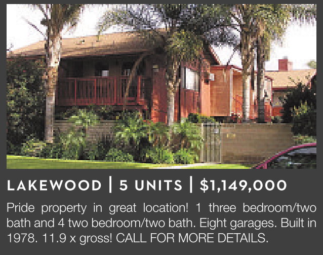 Pride property in great location! 1 three bedroom/two bath and 4 two bedroom/two bath. Eight garages. Built in 1978. 11.9 x gross! CALL FOR MORE DETAILS.