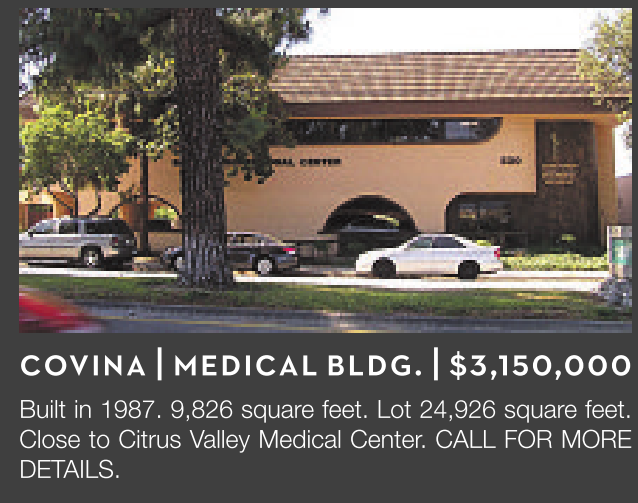 Built in 1987. 9,826 square feet. Lot 24,926 square feet. Close to Citrus Valley Medical Center. CALL FOR MORE DETAILS.