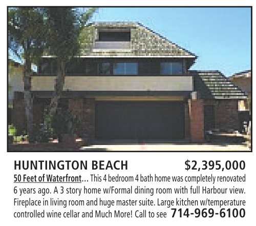 HUNTINGTON BEACH $2,395,000 50 Feet of Waterfront… This 4bedroom4bathhome wascompletelyrenovated 6years ago. A3story home w/Formal dining room with full Harbour view. Fireplace in living room andhugemastersuite. Large kitchen w/temperature controlled wine cellarand Much More!Calltosee 714-969-6100