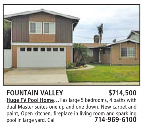 FOUNTAIN VALLEY $714,500 Huge FV Pool Home…Haslarge 5bedrooms, 4baths with