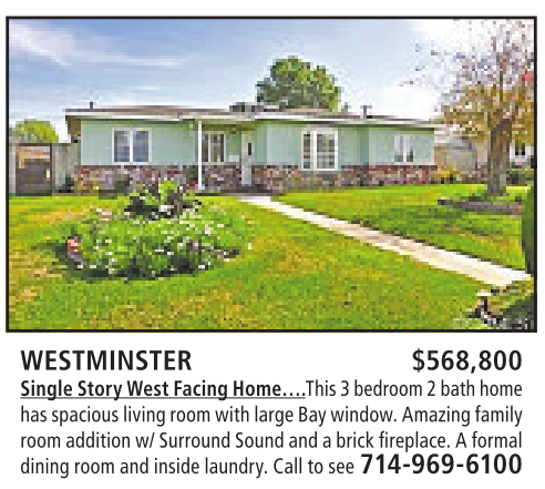hasspacious living room with largeBay window.Amazing family room addition w/ SurroundSoundand abrick fireplace.Aformal diningroomand insidelaundry.Calltosee 714-969-6100