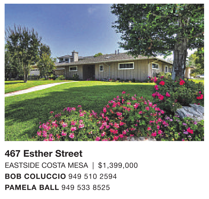 EASTSIDE COSTA MESA | $1,399,000 BOB COLUCCIO 949 510 2594 PAMELA BALL 949 533 8525