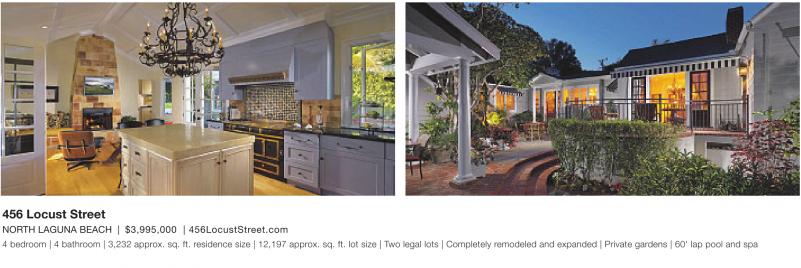 456 Locust Street NORTH LAGUNA BEACH | $3,995,000 | 456LocustStreet.com 4 bedroom | 4 bathroom | 3,232 approx. sq. ft. residence size | 12,197 approx. sq. ft. lot size | Two legal lots | Completely remodeled and expanded | Private gardens | 60' lap pool and spa See also