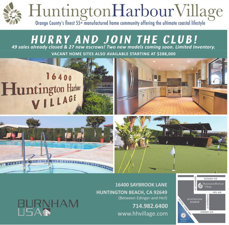 Orange County’s finest 55+ manufactured home community offering the ultimate coastal lifestyle H U R R Y A N D J O I N T H E C L U B ! 49 sales already closed & 27 new escrows! Two new models coming soon. Limited Inventory. VACANT HOME SITES ALSO AVAILABLE STARTING AT $288,000 16400 SAYBROOK LANE HUNTINGTON BEACH, CA 92649 (Between Edinger and Heil) EDINGER AVE HEIL AVE HUNTINGTON HARBOR WARNER AVE PACIFIC OCEAN