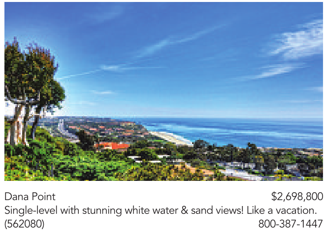 Dana Point $2,698,800 Single-level with stunning white water &sand views! Like avacation. (562080) 800-387-1447