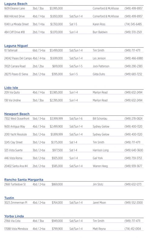 446 VistaRoma 3bd /2+ba $925,000 Sun 1-4 Gail York (949) 759-3753