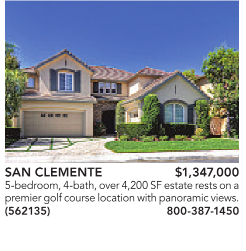 SAN CLEMENTE $1,347,000 5-bedroom,4-bath, over4,200 SF estate restsona premiergolf course location with panoramicviews. (562135) 800-387-1450