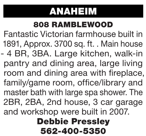 808 RAMBLEWOOD Fantastic Victorian farmhouse built in 1891, Approx. 3700 sq. ft. . Main house - 4 BR, 3BA. Large kitchen, walk-in pantry and dining area, large living room and dining area with fireplace, family/game room, office/library and master bath with large spa shower. The 2BR, 2BA, 2nd house, 3 car garage and workshop were built in 2007.