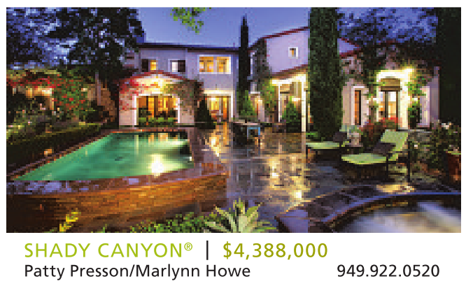 SHADY CANYON ® | $4,388,000 Patty Presson/Marlynn Howe 949.922.0520
