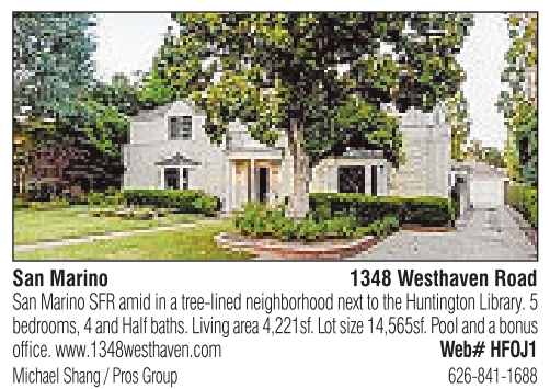 San Marino SFR amid in atree-lined neighborhood next to the Huntington Library.5 bedrooms, 4and Half baths. Living area 4,221sf.Lot size 14,565sf.Pool and abonus office. www.1348westhaven.com Web# HFOJ1