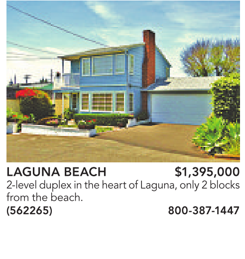 LAGUNA BEACH $1,395,000 2-levelduplex in theheart of Laguna,only2blocks from thebeach. (562265) 800-387-1447