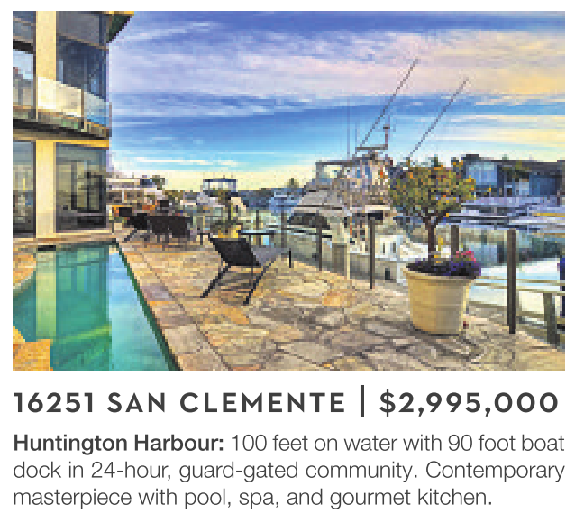 Huntington Harbour: 100 feet on water with 90 foot boat dock in 24-hour, guard-gated community. Contemporary masterpiece with pool, spa, and gourmet kitchen.