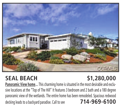 SEAL BEACH $1,280,000 Panoramic View home... This charminghome is situated in themost desirable and exclusive locations atthe “Top ofThe Hill” It features 3bedroom and 2bath and a180 degree panoramic view of the wetlands. The entire home has been remodeled. Spacious redwood decking leadstoabackyard paradise.Calltosee 714-969-6100