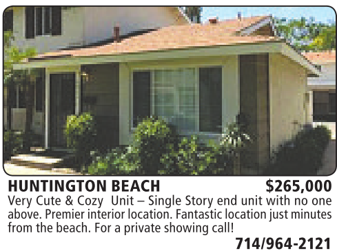 HUNTINGTON BEACH $265,000 Very Cute &Cozy Unit –Single Story end unit with no one