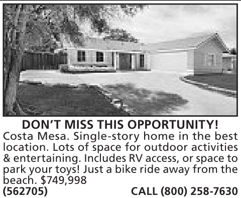 beach. $749,998 (562705) CALL (800) 258-7630