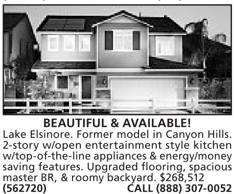 saving features. Upgraded flooring, spacious master BR, & roomy backyard. $268,512 (562720) CALL (888) 307-0052