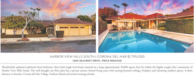 HARBOR VIEW HILLS SOUTH | CORONA DEL MAR $1,795,000 1400 SEACREST DRIVE : PRICE REDUCED