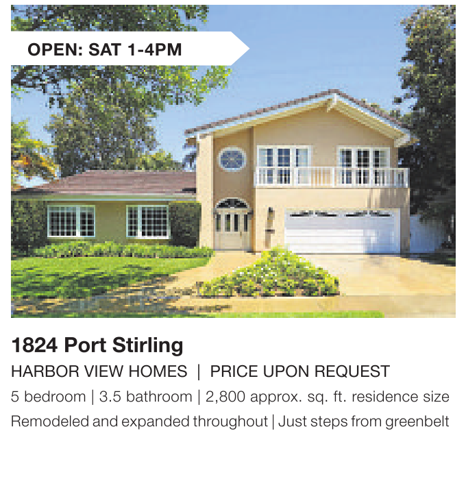 HARBOR VIEW HOMES | PRICE UPON REQUEST 5 bedroom | 3.5 bathroom | 2,800 approx. sq. ft. residence size Remodeled and expanded throughout |Just steps from greenbelt