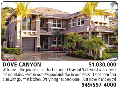 DOVE CANYON $1,030,000 Welcome to this private retreat backinguptoClevelandNatl. Forest with view of