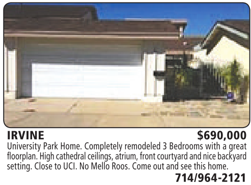 IRVINE $690,000 University Park Home. Completely remodeled 3Bedrooms with agreat floorplan. Highcathedral ceilings,atrium, frontcourtyardand nicebackyard setting. Close to UCI. No MelloRoos. Come outand seethis home.